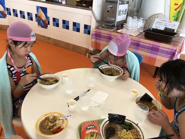 みんなお腹いっぱい食べて休憩してからプールに入りましたよ