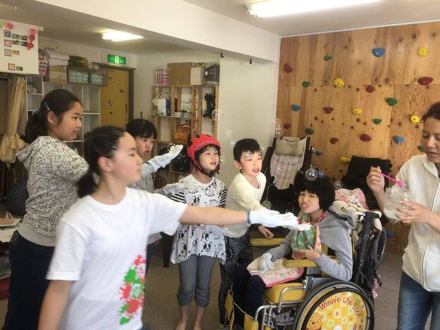 割れないシャボン玉に触る体験もしました