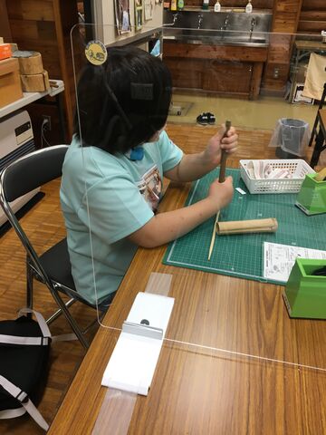 水鉄砲作りを体験し、お外に出て試してみると勢いよく