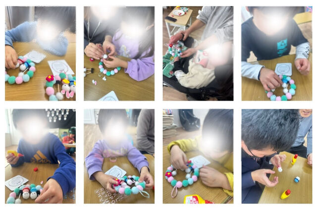 細かいパーツでお内裏様とお雛様の目と鼻を付けるのに苦戦する子供たち