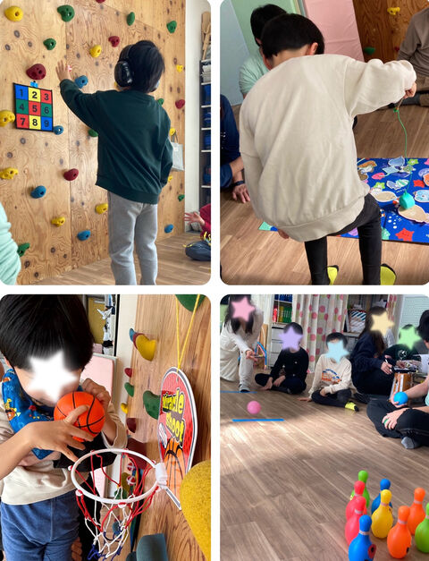 ボールダーツやバスケットボール等、集中力を鍛えながら楽しくゲームをしている時に赤鬼と青鬼が登場👹
