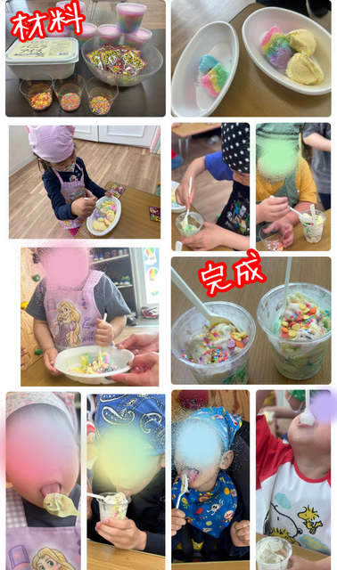 カラフルな綿あめに材料を混ぜてトッピングをして完成