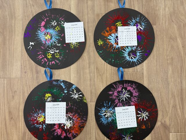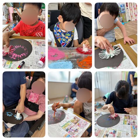 重ねて色を付け、一人一人違う模様の花火が打ちあがりました🎇